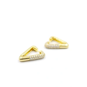 Taşlı Üçgen Küpe - 14K Altın