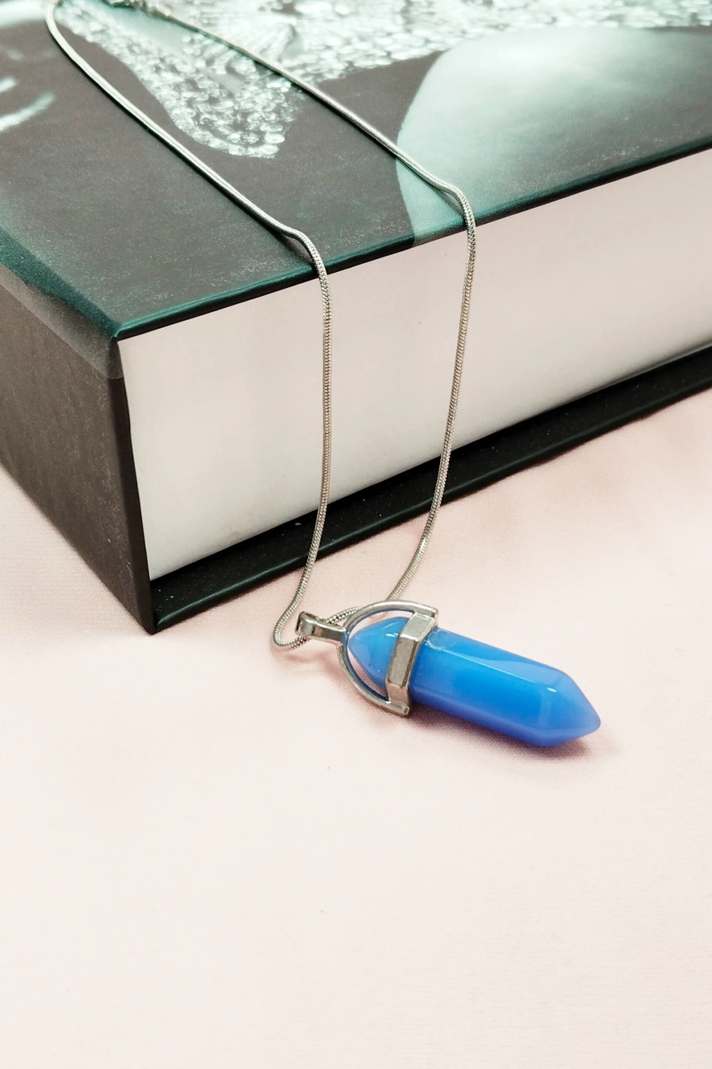 Kyanit Doğal Taşı Zincirli El Yapımı Tasarımlı Kolye Uç: 3,5 Cm Zincir: 20 Cm Kutulu