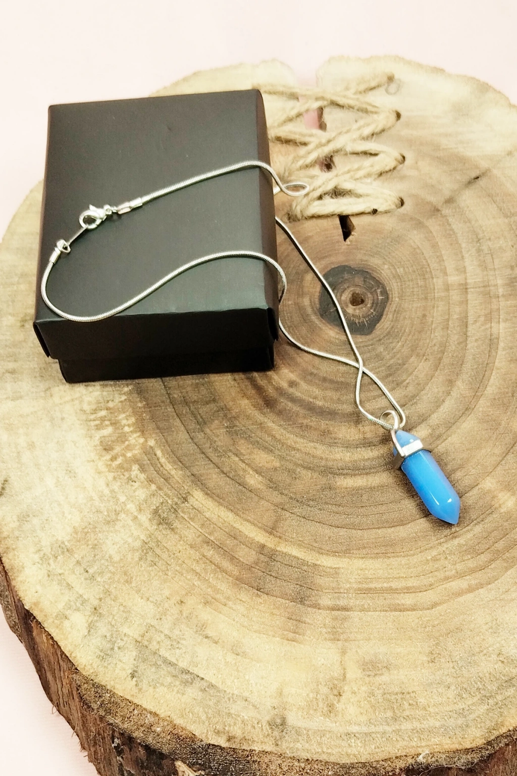 Kyanit Doğal Taşı Zincirli El Yapımı Tasarımlı Kolye Uç: 3,5 cm Zincir: 20 cm Kutulu