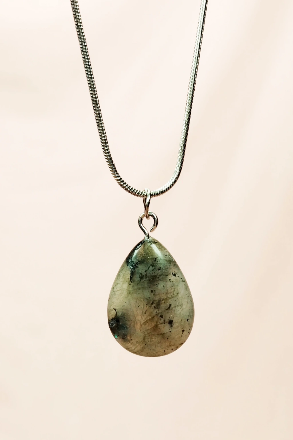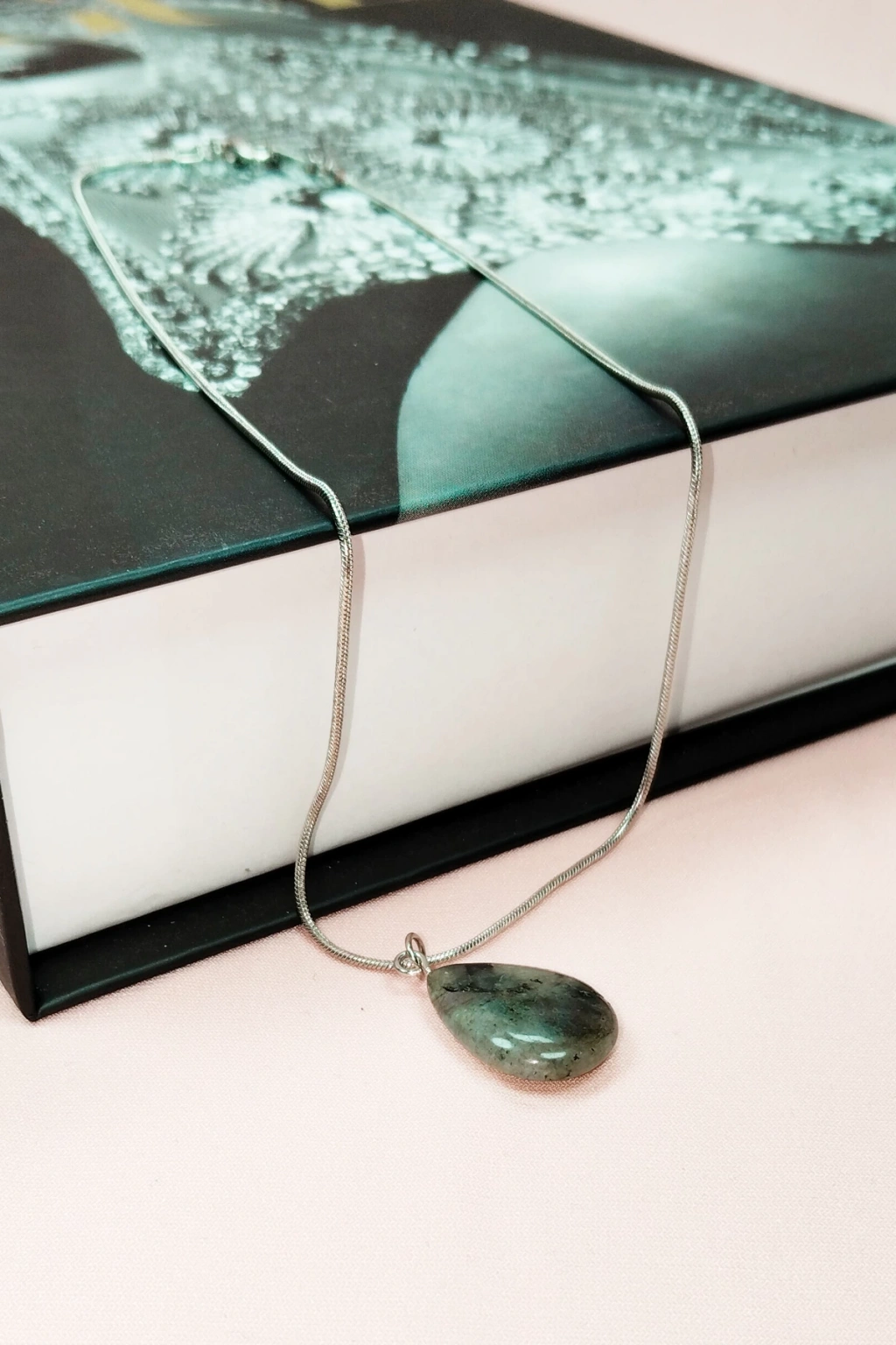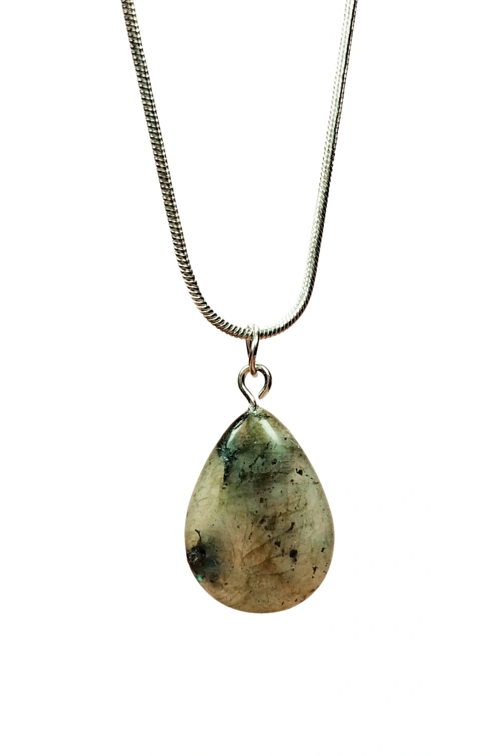 Labradorit Doğal Taşı Zincirli El Yapımı Kolye Uç: 2 Cm Zincir: 20 Cm Kutulu