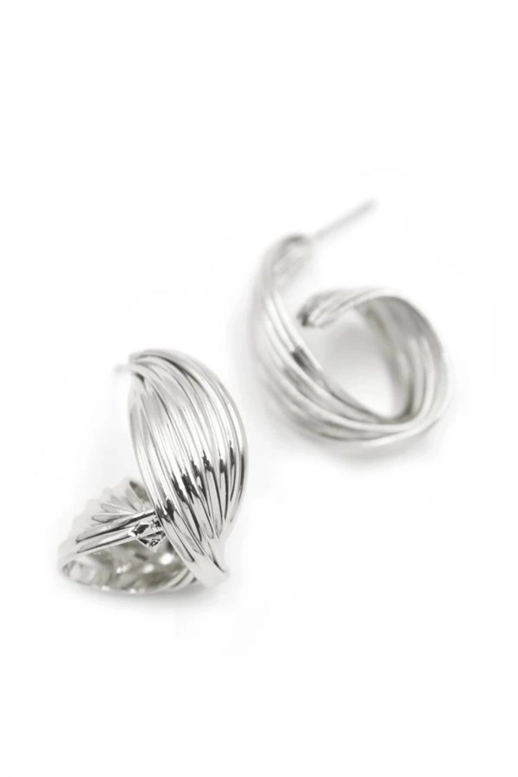 Metal Kıvrımlı Küpe - Gümüş