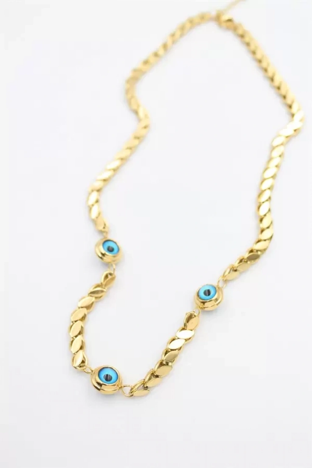 Nazarlı Arpa Zincir Kolye - 45 cm - Altın