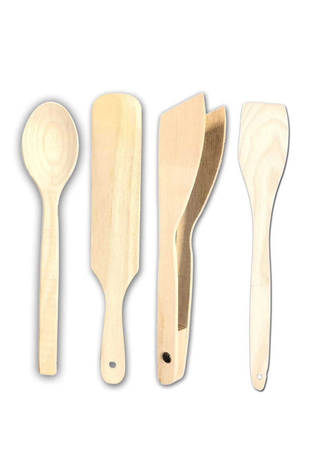 Pratik Kullanım Ahşap Mutfak Seti 4 Parça