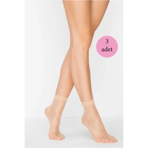 3 Adet Fit 15 Soket Ince Parlak Kısa Çorap Açık Ten