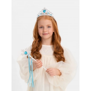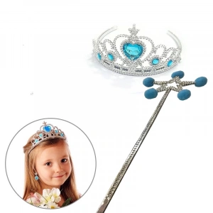 Karlar Ülkesi Elsa Mavi Kalpli Taç Ve Mavi Asa Seti Çocuk Boy