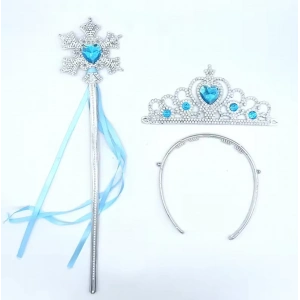Karlar Ülkesi Elsa Mavi Kalp Tacı Ve Kar Temalı Asa Seti