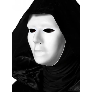 Siyah Kapüşonlu 120 Cm Pelerin Ve Beyaz Boyanabilir Tam Yüz Maske