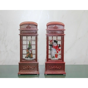 Telefon Kulübesi Tasarımı Yılbaşı Temalı Işıklı Müzikli Kar Küresi Alk3209
