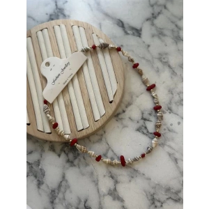 Kırıktaşlı Deniz Kabuğu Kolye - Kırmızı