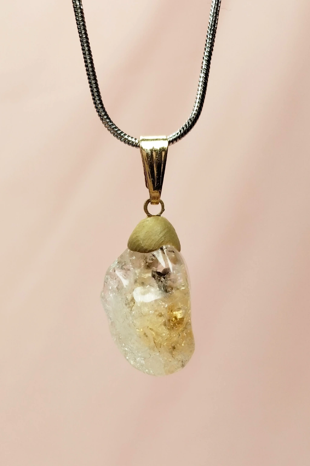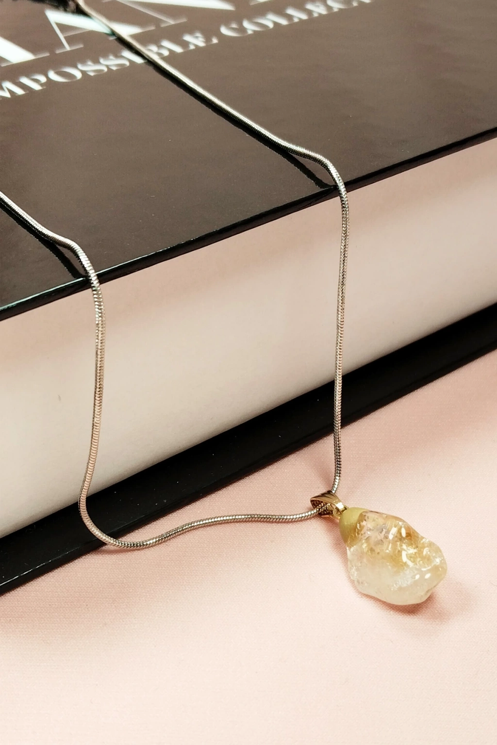 Sitrin Doğal Taşı Zincirli El Yapımı Kolye Uç: 2 Cm Zincir: 20 Cm Kutulu