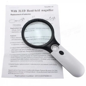 3 Ledli Işıklı El Büyüteci 250 Lümen Beyaz Işık Büyüteç 3x Zoom Tamirci Büyüteç Wt374