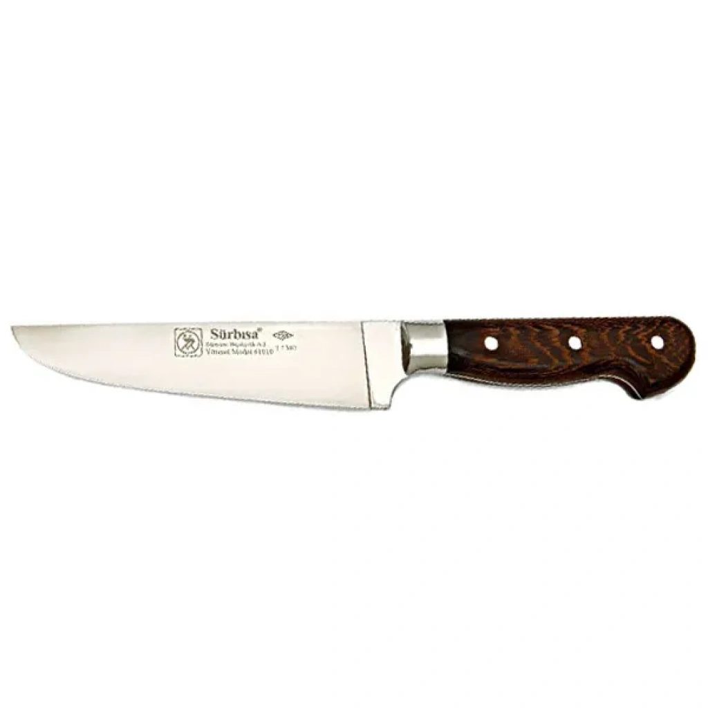 Sürbısa 61010YM Sürmene Yöresel Kasap Deri Yüzme Bıçağı, hem profesyonel şefler hem de ev kullanıcıları için yüksek kaliteli ve işlevsel bir seçenektir. Deri yüzme ve et işleme işlemlerinde hassasiyet ve verimlilik sağlar. Geleneksel Sürmene bıçakçılığını yansıtan bu bıçak, doğru bakım ve temizlikle uzun ömürlü bir kullanım sunar ve mutfaktaki çeşitli et işleme görevlerini kolaylaştırır.