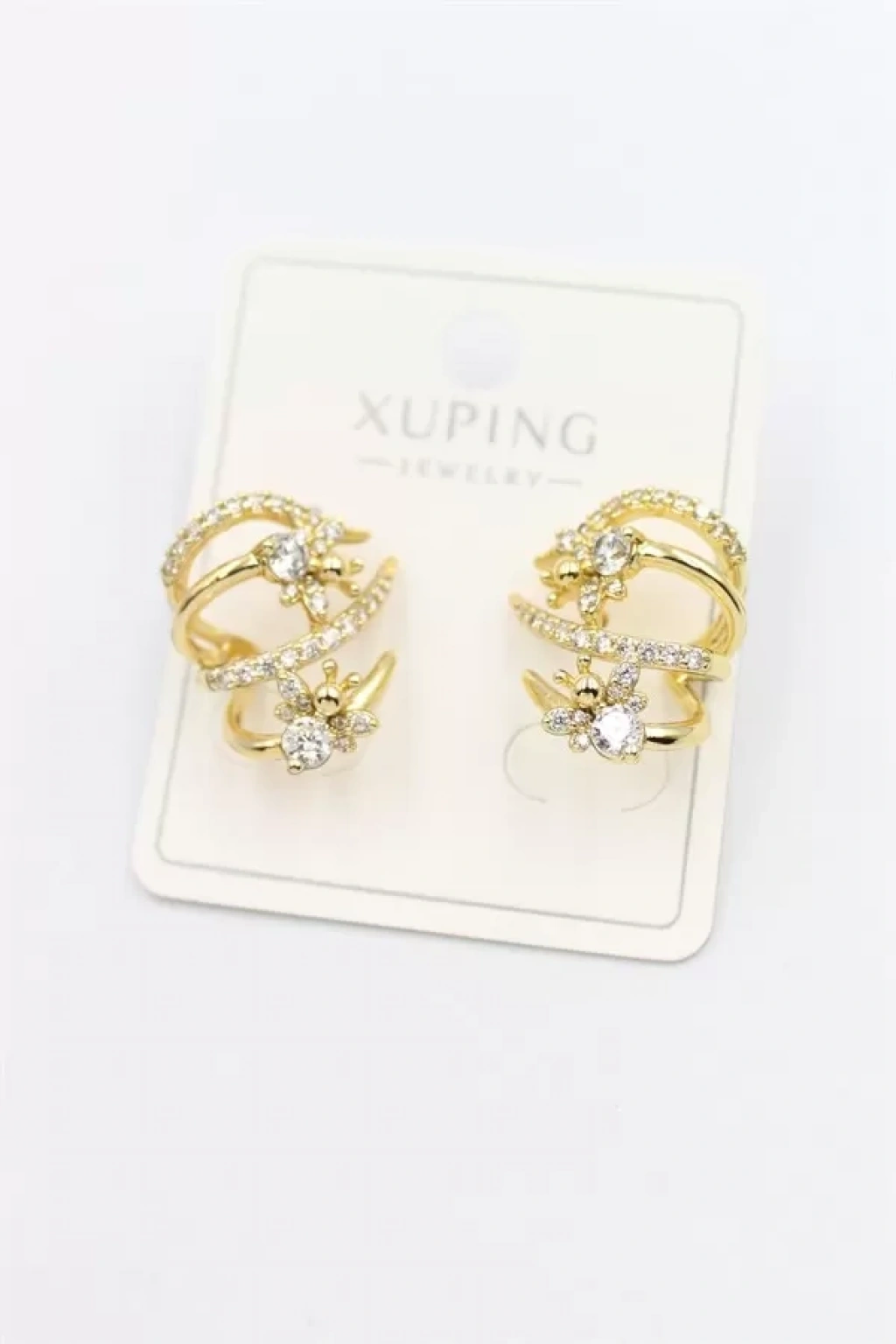 Taşlı Çoklu Görünümlü Küpe - Altın