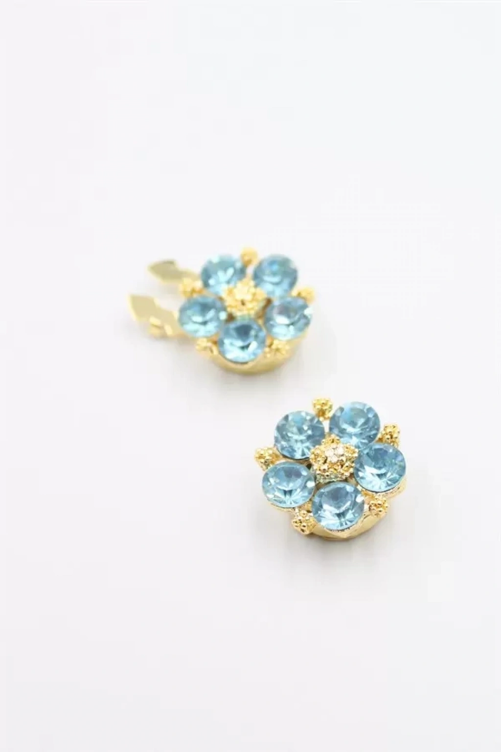 Taşlı Düğme Broşu - Mavi