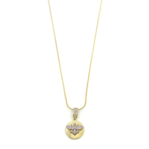 Taşlı Güneş ve Ay Kolye - 14K Altın