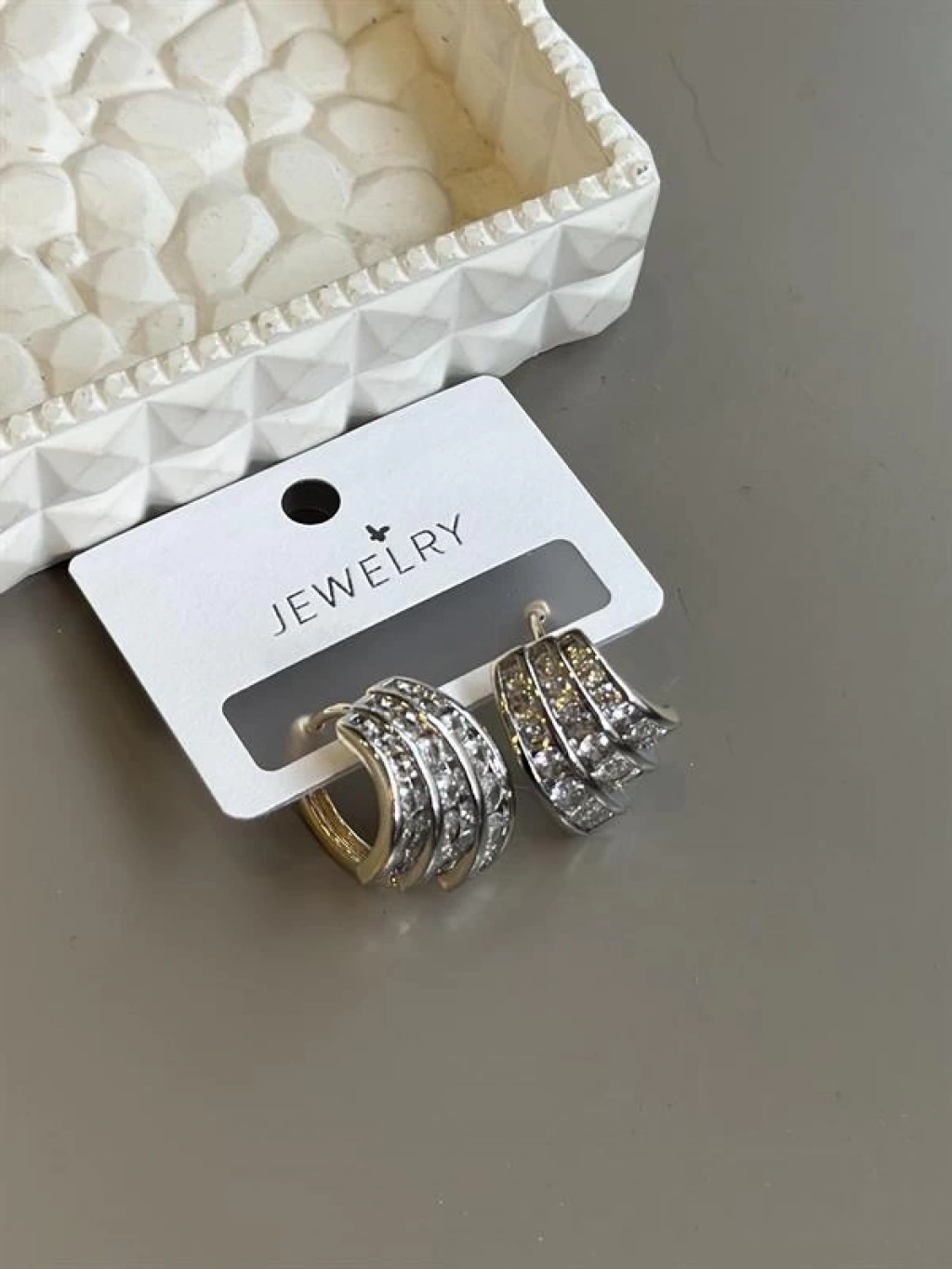 Taşlı Halka Küpe - Altın