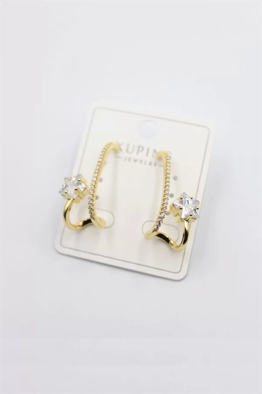 Taşlı Halka Küpe - Altın