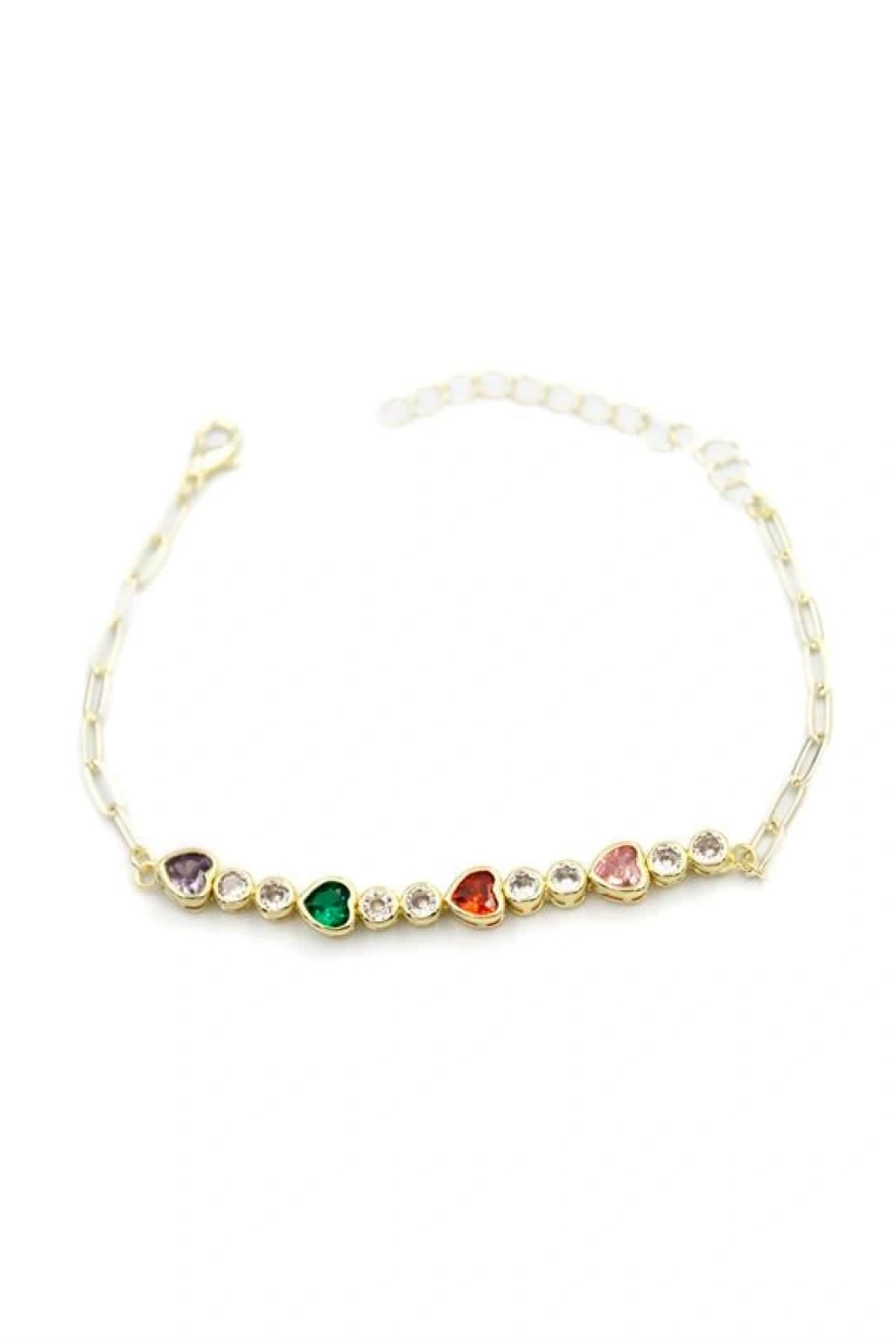Taşlı Kalp Bileklik - Altın