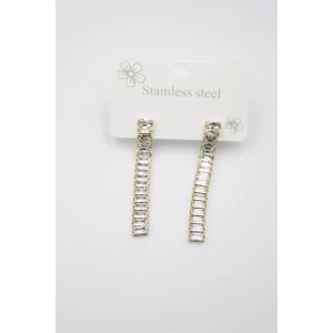Büyük Baget Taşlı Çelik Küpe - Altın