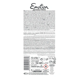 Emotion Invisible Fresh Black & White Kadın Deodorant 150ml Vegan, Leke Bırakmaz