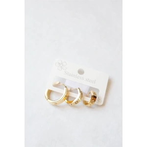 3'lü Taşsız Çelik Halka Küpe - Altın