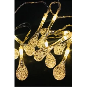 10 Led 2 Metre Sarı Kristal Su Damlası Güneş Enerjili Led Işık Solar Bahçe Ağaç Lamba Aydınlatması