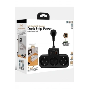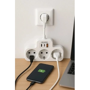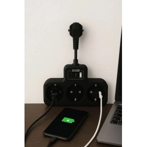 Çoklu Kablolu Priz Yüksek Gerilim Korumalı 3’lü Priz 1x Usb 2x Type-c Çıkışlı Grup Priz Çoğaltıcı Siyah