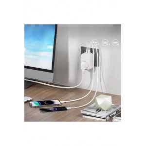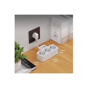 Tekli Yüksek Voltaj Korumalı Duvar Prizi 2x Type-c 1x Usb Çıkışlı Priz Grup Priz Çoğaltıcı Beyaz