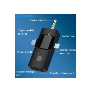 Type-c Girişli Telefon Uyumlu Wireless Youtube Facebook Tiktok Yayın Kablosuz Yaka Mikrofonu