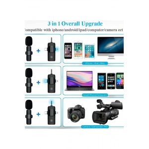 Yüksek Kalite Profesyonel 3 In 1 Kablosuz Taşınabilir Yaka Mikrofonu Youtube Facebook Tiktok