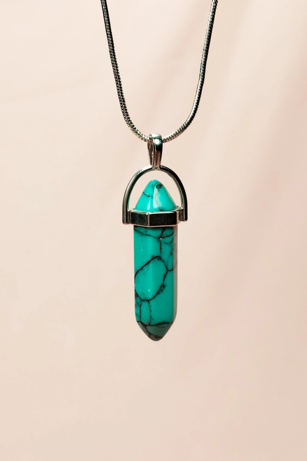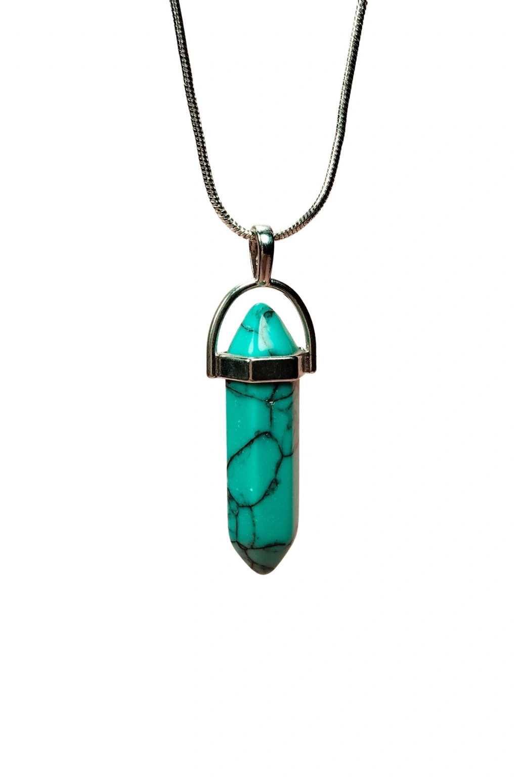 Turkuaz Doğal Taşı Zincirli El Yapımı Kolye Uç: 3 Cm Zincir: 20 Cm Kutulu