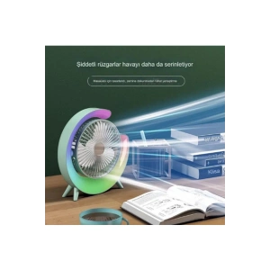 Masaüstü Vantilatör Usb Şarjlı Rgb Led Işıklı 3 Kademeli 180° Ayarlanabilir Soğutucu Fan Yeşil