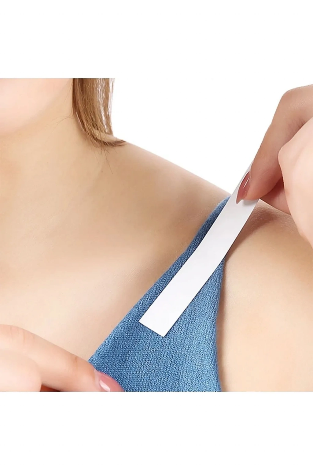 VÜCUT VE KIYAFET İÇİN ÇİFT TARAFLI SABİTLEME DEKOLTEABİYE GELİNLİK ELBİSE SÜTYEN BANTI TEK EBAT Giysisabitleme, dekolte kapatma ve vücut bandı giysileri vücuda bağlamak için kullanılabilen çift taraflı bir vücut bandıdır.