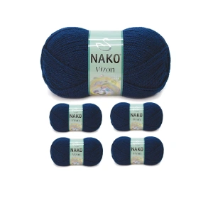 5 Adet Vizon Premium Akrilik El Örgü İpi Yünü Renk No:148 Lacivert