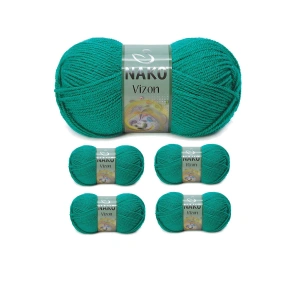 5 Adet Vizon Premium Akrilik El Örgü İpi Yünü Renk No:181 Ördek Başı Yeşil