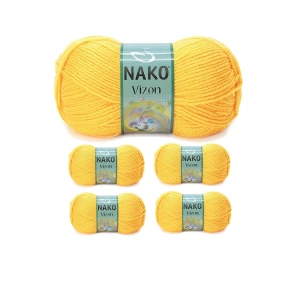 5 Adet Vizon Premium Akrilik El Örgü İpi Yünü Renk No:184 Sarı