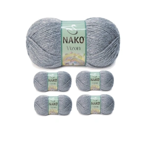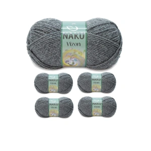 5 Adet Vizon Premium Akrilik El Örgü İpi Yünü Renk No:193 Loş Gri