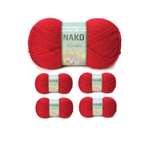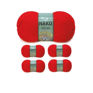 5 Adet Vizon Premium Akrilik El Örgü İpi Yünü Renk No:251 Bayrak Kırmızı