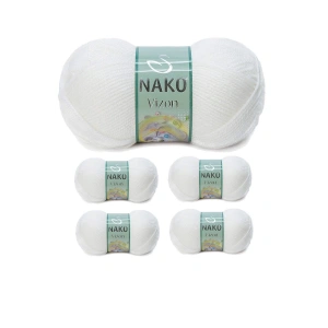 5 Adet Vizon Premium Akrilik El Örgü İpi Yünü Renk No:208 Beyaz