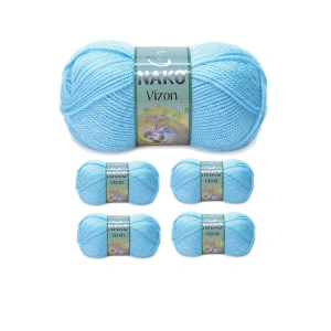 5 Adet Vizon Premium Akrilik El Örgü İpi Yünü Renk No:214 Ufuk Mavisi