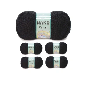 5 Adet Vizon Premium Akrilik El Örgü İpi Yünü Renk No:217 Siyah