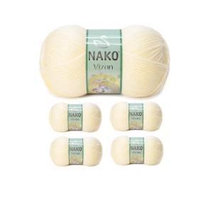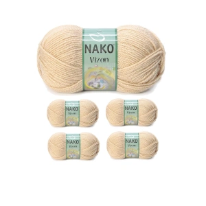 5 Adet Vizon Premium Akrilik El Örgü İpi Yünü Renk No:256 Krem