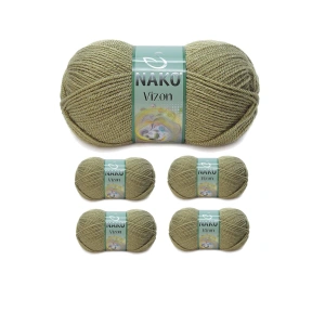 5 Adet Vizon Premium Akrilik El Örgü İpi Yünü Renk No:268 Asker Yeşil