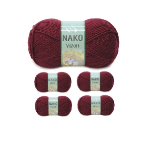 5 Adet Vizon Premium Akrilik El Örgü İpi Yünü Renk No:999 Bordo