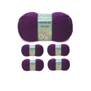 5 Adet Vizon Premium Akrilik El Örgü İpi Yünü Renk No:60 Mürdüm