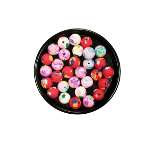 30 Adet 10 mm Polimer Kil Fimo Boncuk Takı Bileklik + 1 Metre Lastikli Misina Hediye - Desenli Yuvarlak