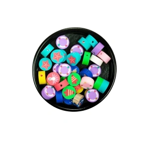 90 Adet 10 mm Polimer Kil Fimo Boncuk Takı Bileklik + 5 Metre Misina Hediye - Ayıcık - Bayrak - Yin Yang