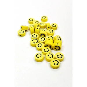 90 Adet 10 mm Polimer Kil Fimo Boncuk Takı Bileklik + 5 Metre Lastikli Misina Hediye - Gülen Yüz Smile