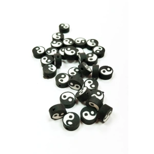 90 Adet 10 mm Polimer Kil Fimo Boncuk Takı Bileklik + 5 Metre Lastikli Misina Hediye - Yin Yang