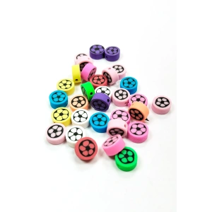 30 Adet 10 mm Polimer Kil Fimo Boncuk Takı Bileklik + 1 Metre Lastikli Misina Hediye - Renkli Çiçek